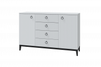 Комод с 2 дв. и 4 ящ.: ш=1502 в=976 г=458 мм Материал: Каркас: ЛДСП (16 мм) «Белое сияние» Декоративная опора: п/м лиственный (береза) Фасад: МДФ (16 мм), пленка ПВХ «Белый снег софт» Фурнитура: ручка «Boyard черная» ручка «Валмакс черная» направляющие шариковые петля накладная петля мебельная с доводчиком